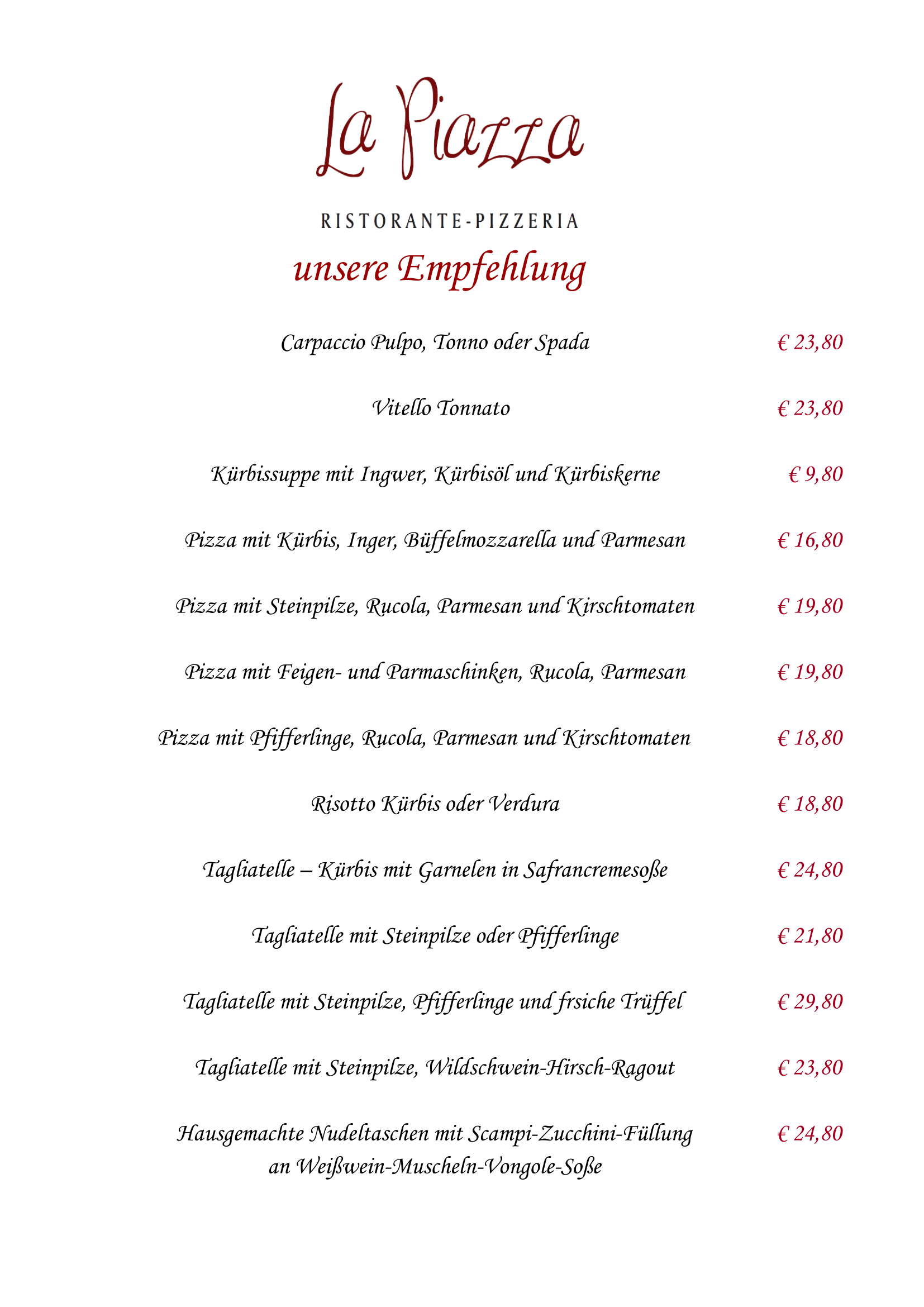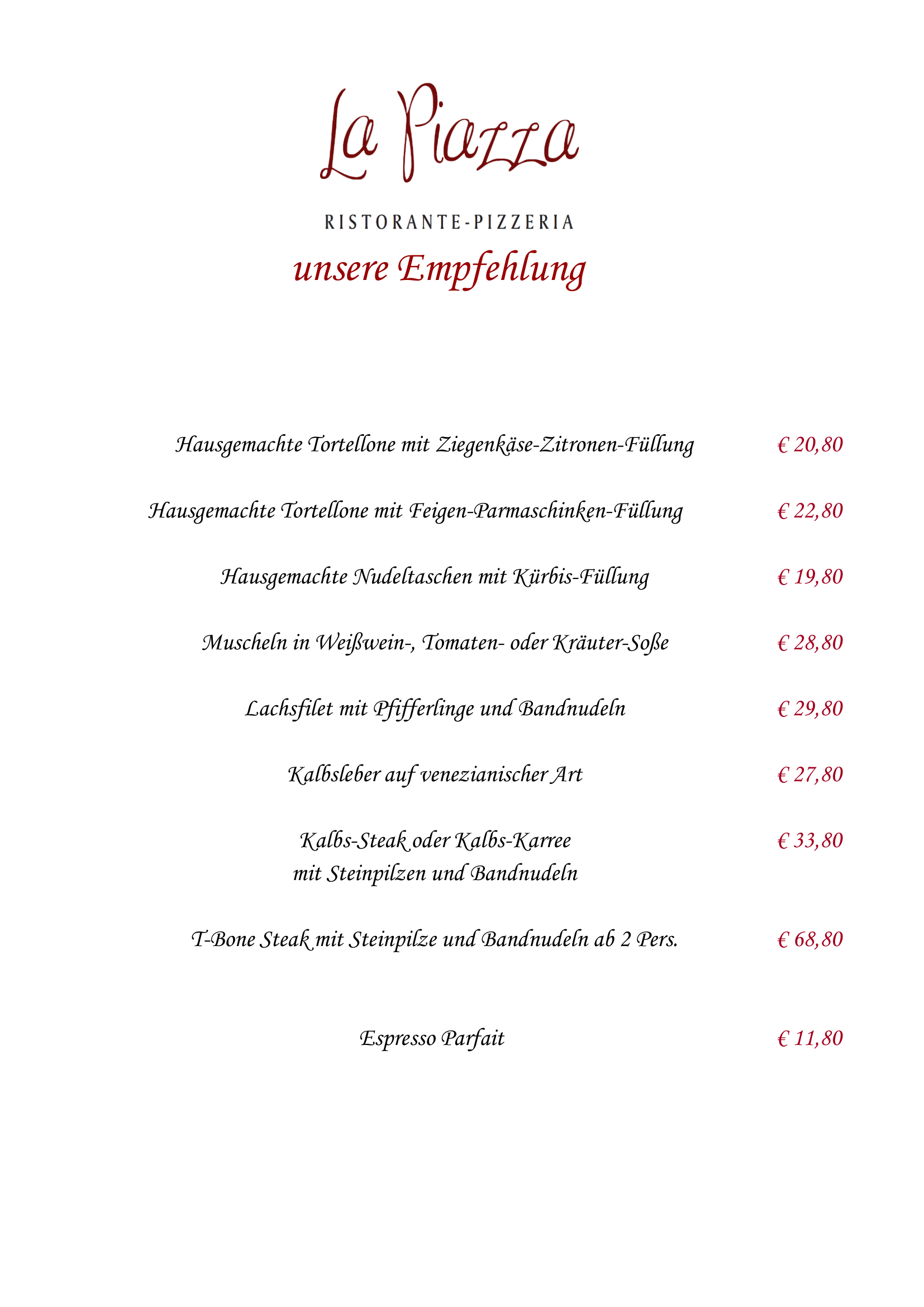 Wir freuen uns darauf, Sie im La Piazza begrüßen zu dürfen, wo die Küche Italiens in ihrer besten Form zelebriert wird!