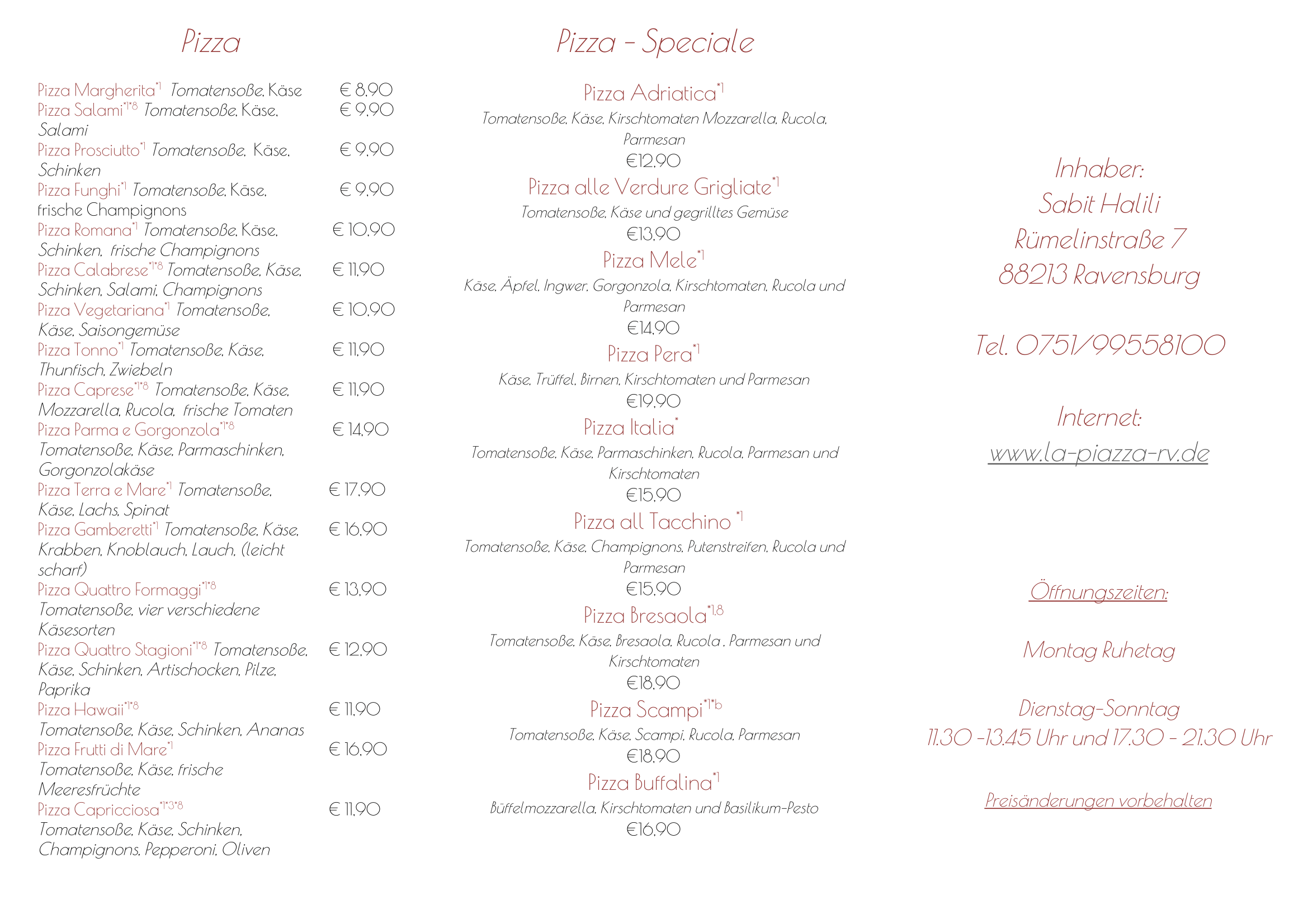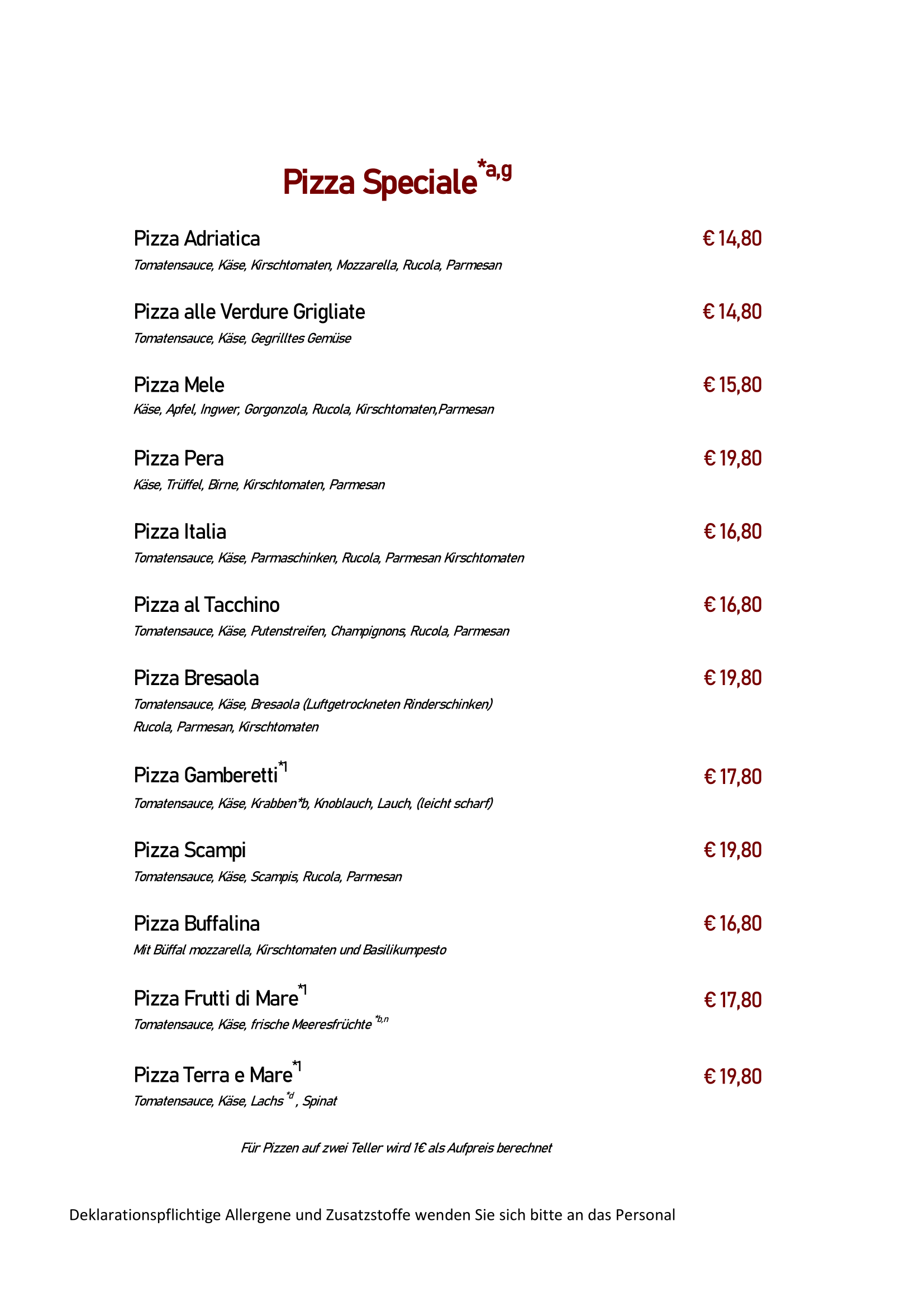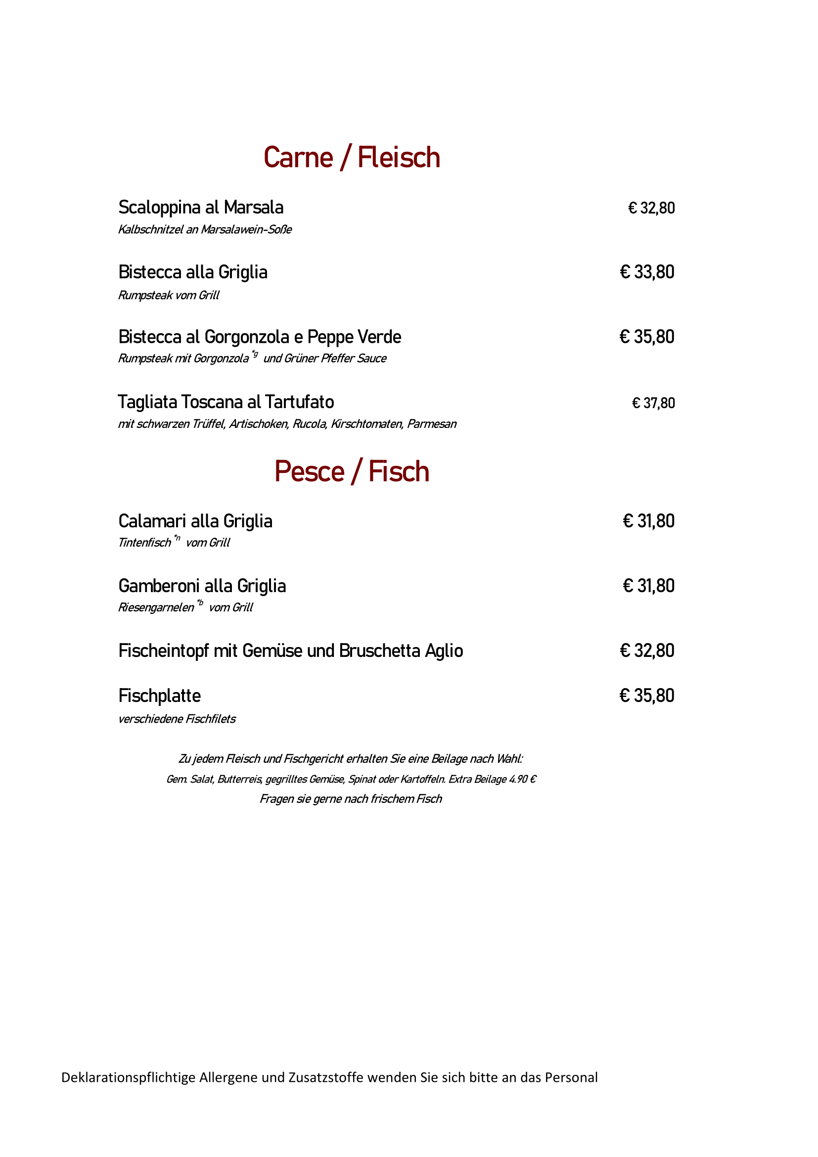 Entdecken Sie die Vielfalt der italienischen Küche in unserer Speisekarte. Jedes Gericht ist eine Hommage an die köstlichen Aromen Italiens – von handgemachter Pasta über knusprige Pizzen bis hin zu saisonalen Spezialitäten. Begleitet von ausgewählten Weinen bieten wir Ihnen Genussmomente, die Sie direkt nach Italien entführen.
